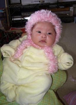 1月5日からRoseyの産後のお手伝いに来てくれてる Rosey母日々のスケジュ-ルにも ココの生活にも慣れちょっと暇をもてあましてきたようです 時々はお買い物に行って見たりもしてたのですがRoseyが毎年季節終わりに買い込んでる毛糸を しまってる箱を見つけこれだ!と思ったようで先日 買い物ついでに 鈎針買って来ました(Roseyは棒針でしか編んだことがないので鈎針なかったの)あんまり根を詰めると疲れるよ…というRoseyの意見もどこへやら…3日で美桜のベストと手袋を編みあげました襟にフリルをつけたりポンポンつけたり意外に楽しそうに編んでました コレで終わるかと思いきや今度は自分のベストも編んでいくようですw
