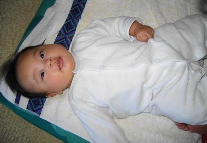無事に一回目の予防接種終わってきました泣きましたよぉ~~ただね…泣いたのは摂取後乾かす為に腕を固定しなきゃいけないんだけどそれが嫌だったみたい腕にワクチンポトンとされてスタンプ式の針を2回ギュギュ!ってするときは眉間にシワをビシッ!!で…足を思いっきり踏ん張ってホぇ~!!でもそんなに泣かなかったの先生も「エライねぇ」って言ってくれたんだけどその後固定体制に入った瞬間「イヤ---!!!ぅんギャ---!!!」そりゃ--もう大泣き乾くまでの10数分roseyの服ビッチョビチョになるくらい泣きました記念すべきBCG摂取こんな感じです しかし帰ってきてからは疲れたのか思いっきり爆睡でした