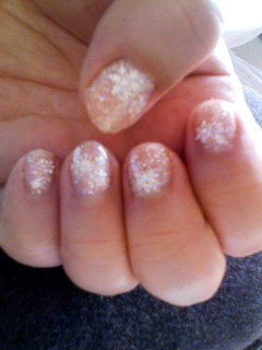 かなり久々にネイルしてみました…とはいえ育児中前のようにロングネイルには出来ませんでも短ければ短いほど長ければくどくなってしまうデザインも可能♪今しか出来ないラメラメジェルにしました…しかし色を入れるとくどくなるのでクリアで♪蓄光のネイルシ-ルを埋めました暗闇で光ります雪の結晶モチ-フ(=´-ノω-`)コッソリ お~い そこで見てる職人さん(幼馴染) あなた好みでしょ美桜も興味津々もう少し大きくなったらやってあげるからねジェルなのでツヤツヤキラキラそれでいてラメがジュル内にしっかり埋まってるので万が一美桜が 指 ペロペロしても大丈夫です