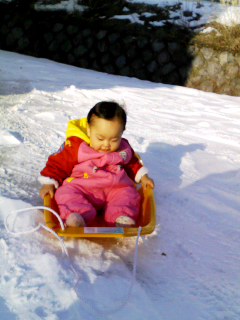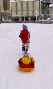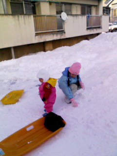 朝ごはん食べさせてリビングでおもちゃで遊んでたけどいきなりドアを指差し「おんもぉ--!!おんもぉ---!!」きたかぁ…でもまだ早いから…と呼びよせても今度はウェアもって来る…しょうがないいくかぁ・・・ するとちょうどはに丸ちゃんとマサ君が帰ってきたマサ君もいっしょにそり遊びおお!!なんだかいいかんじですぞはに丸ちゃんのおなかも大きくなって来ました4月に生まれる赤ちゃんは女の子濃厚らしいキャッ(ノдヽ*))((*ノДヽ)キャッ来年…遅くとも再来年にはマサ君こうして一緒に妹と雪遊びできるねぇそれまでは美桜で予行練習だね