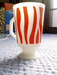 何の変哲もない雑貨屋さんの小窓のところにちょこんとこの子がいたんですへぇ~~飾ってるんだねぇ…って見たらあら?値段つき!!思わず「これ売り物ですか?」って聞いたらあ…えぇ…もしよければ安くしますよほこり被ってるし…他にもありますか?っていたらこれ一個特に割れてないし欠けてないし小窓にいたけど陽にも焼けてないし…結構ツルツルちゃん相場はよくわからないけど…安いと思うんだけど…1500円で買っちゃったキャッ(ノдヽ*))((*ノДヽ)キャッ名前は後で調べましたカーブドストライプ フッテッドマグ レッドあってるかな?
