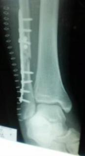 あとがき日記です… 今日は担当の先生から家族に手術説明がありました腓骨がパッキリ折れてるためこれは確実にチタンプレ-トでつなぐこと確定♪(*^^)/。・:*:・゚'★,。・:*:・゚'☆ Congratulations!!で…脛骨は…内果部分が折れてはいるんだけどとめるまで行かないんじゃないか…というレントゲンでの目視での見解開けてみて必要であればボルトでつなぎますとのこと… 脱臼部分も綺麗に入ってるし腓骨だけプレ-トでつなぐだけならそんなに時間はかかりませんとのこと♪後は靭帯は切れてるのはしょうがないつながるまで待ちましょうってことで時間が解決してくれるのかな?骨がソコソコくっつくのに3ヶ月術後のリハビリを始めるのも2~3ヵ月後からかな?