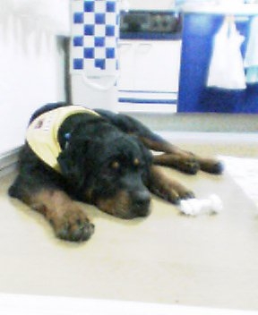 とりあえず、ダン吉の好きなフローリングにいつも使ってる布団をひいてあげた。(台所ですが)