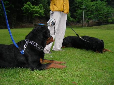 訓練もかねて、歩いてすれ違ったり、待てしてるマックスのまわりをクルクルまわったり…