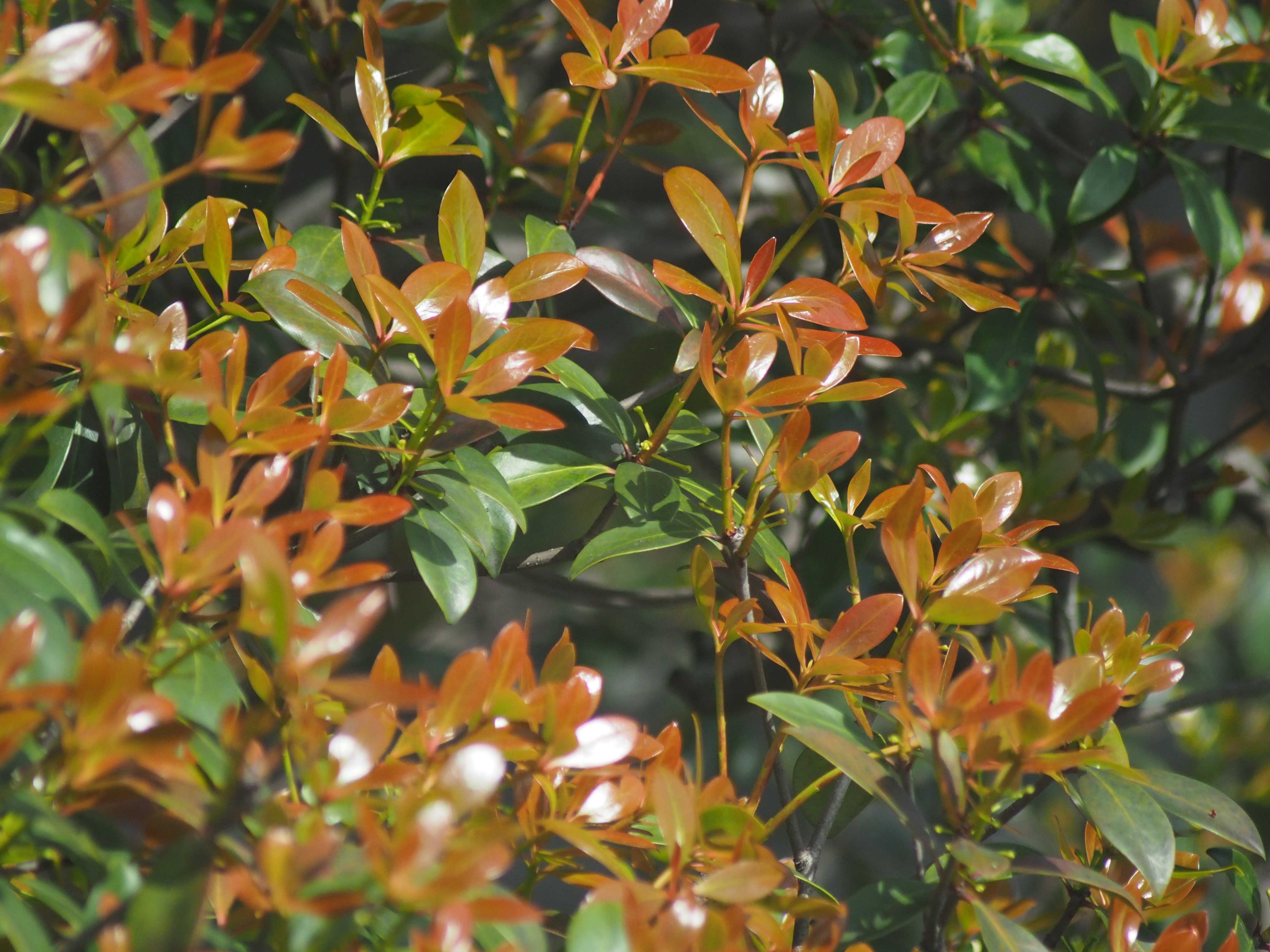 庭のモッコクの若芽が美しい。モッコクは輪生で前の年の枝の先に3−5本の若芽を出すのでどんどんと密になって行く。春の芽は赤く、それから緑に変わり、白い花をつける。モッコクハマキの被害を受けるのが夏。少し早めに殺虫剤をまかなきゃいけない。大きいので動力噴霧器を引っ張り出す。