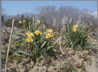 足の不自由な子のサポートで、上りには結構力を使った。少し汗をかくほどだったが、山頂は風もよく通り(あたりまえ!)少々寒かった。それでも日差しは本当に春だ。前回は多分もう1ヶ月遅れでここに来て、女房はたくさん土筆を採って帰った。今日はまだまだだったけれど、畑の隅には水仙が。これ、多分ラッパスイセンだと思うのだが・・・