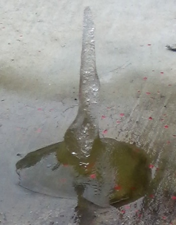 温暖なこの地方も今日は冷え込んだ。外の水道は凍っていた。そして、会社の朝礼時には消火栓から少しずつ水漏れしていたので見事な氷筍が。この写真は昼休みに撮ったのでだいぶ痩せているが、朝はもっと立派だった。これが冷えのバロメータである。