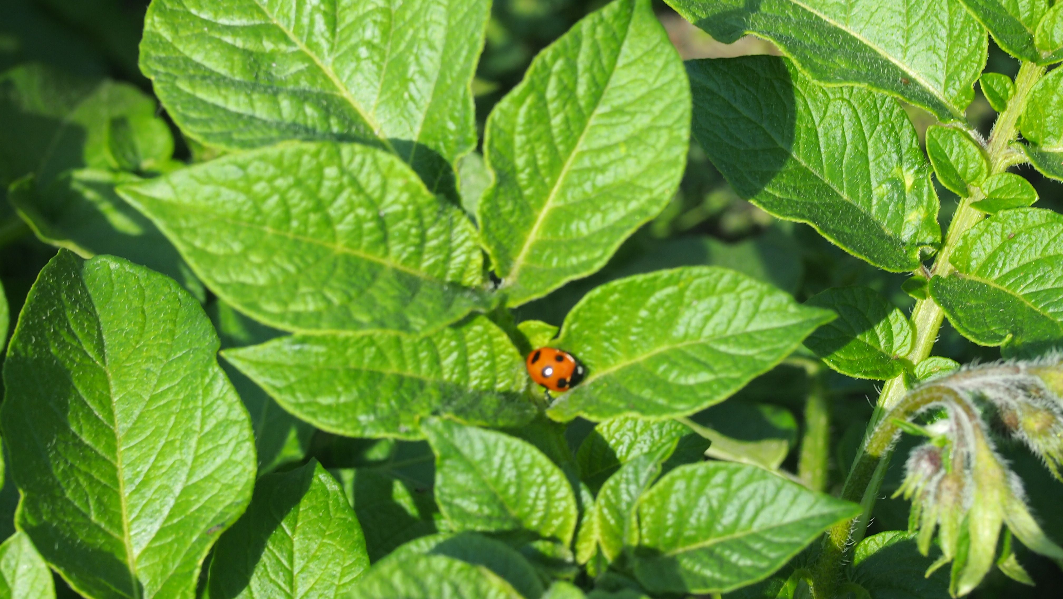 これはアブラムシを駆逐してくれるナナホシテントウ。正義の味方だ。