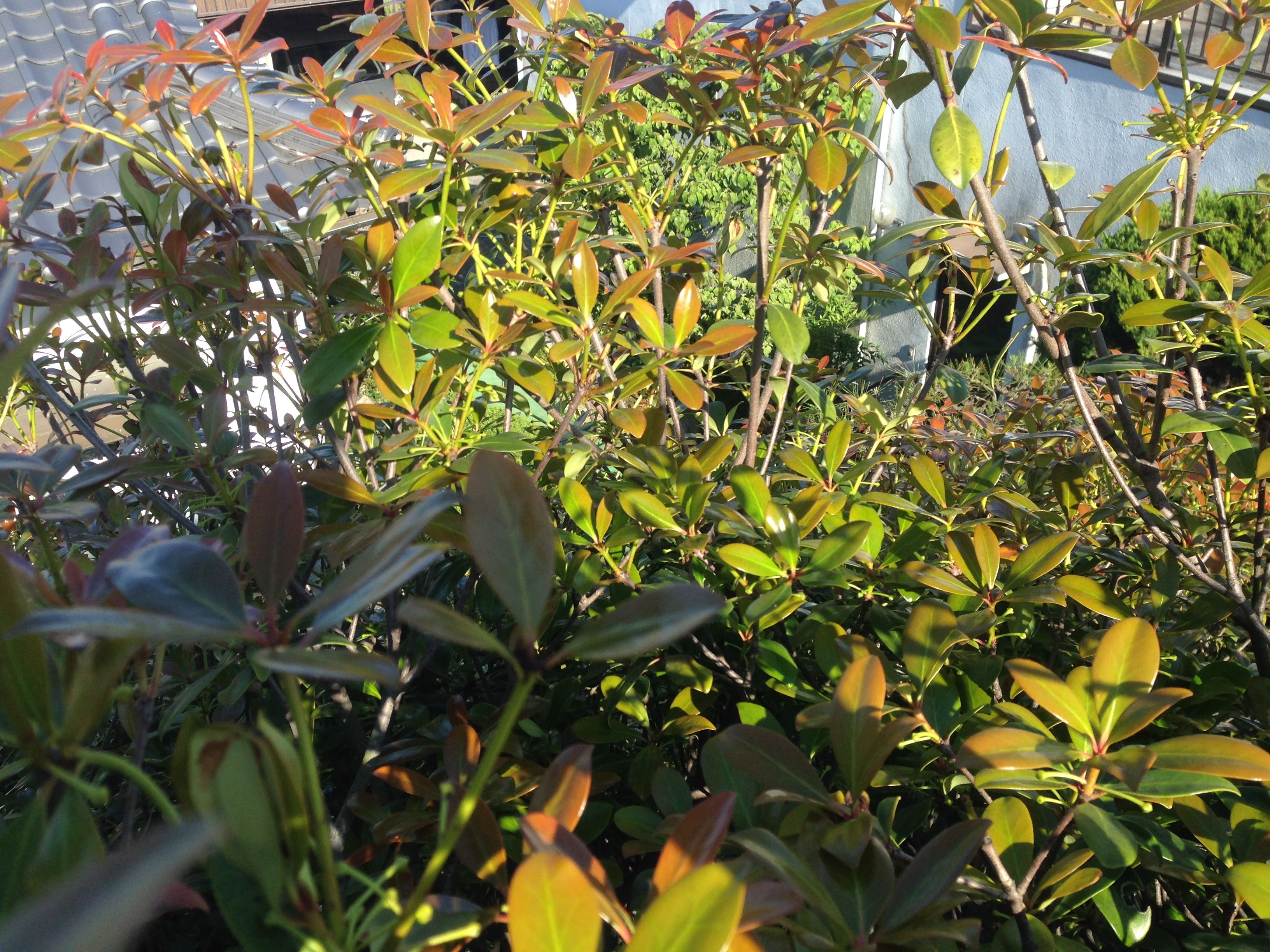 うちの庭には5mほどにもなる大きなモッコクがある。新芽が伸びてきて少し込んできたところがあるのですかしてやろうと思い、登ってみたらモッコクハマキが始動していて、既に筒状になっている葉っぱがある。