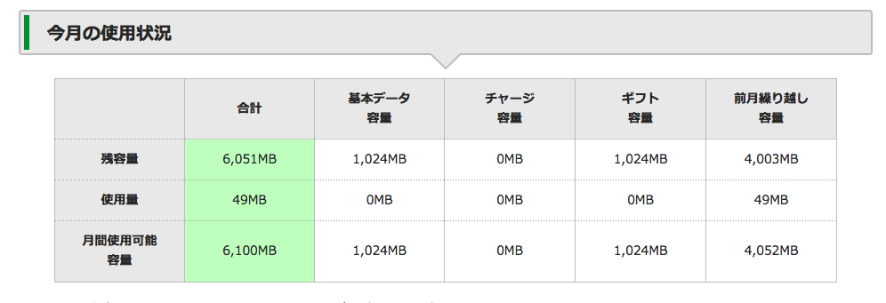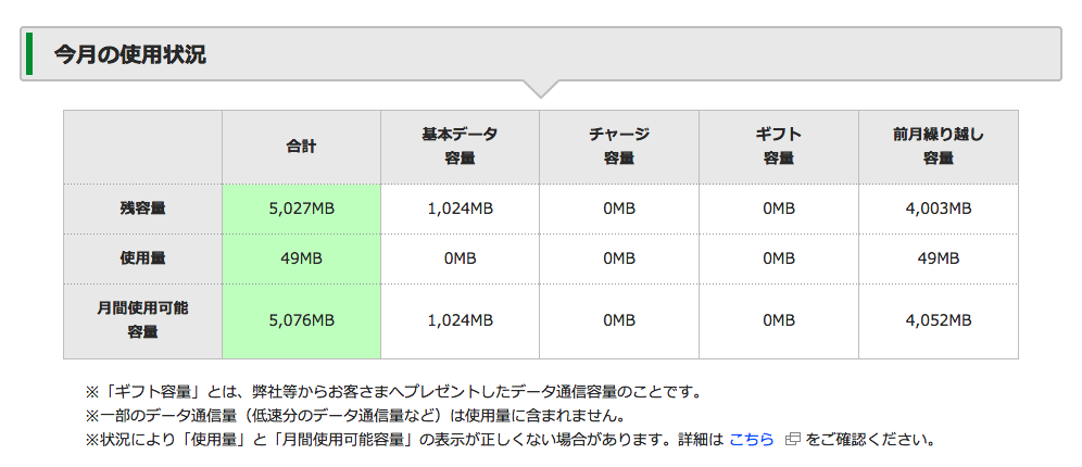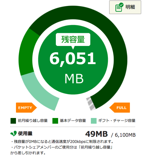mineoでは複数回線の利用でパケットシェアという、グループでパケットを共有できる制度があり、これを利用していますが、シェアできるのは前月の残り分となっています。月が変わったので一応確認しました。