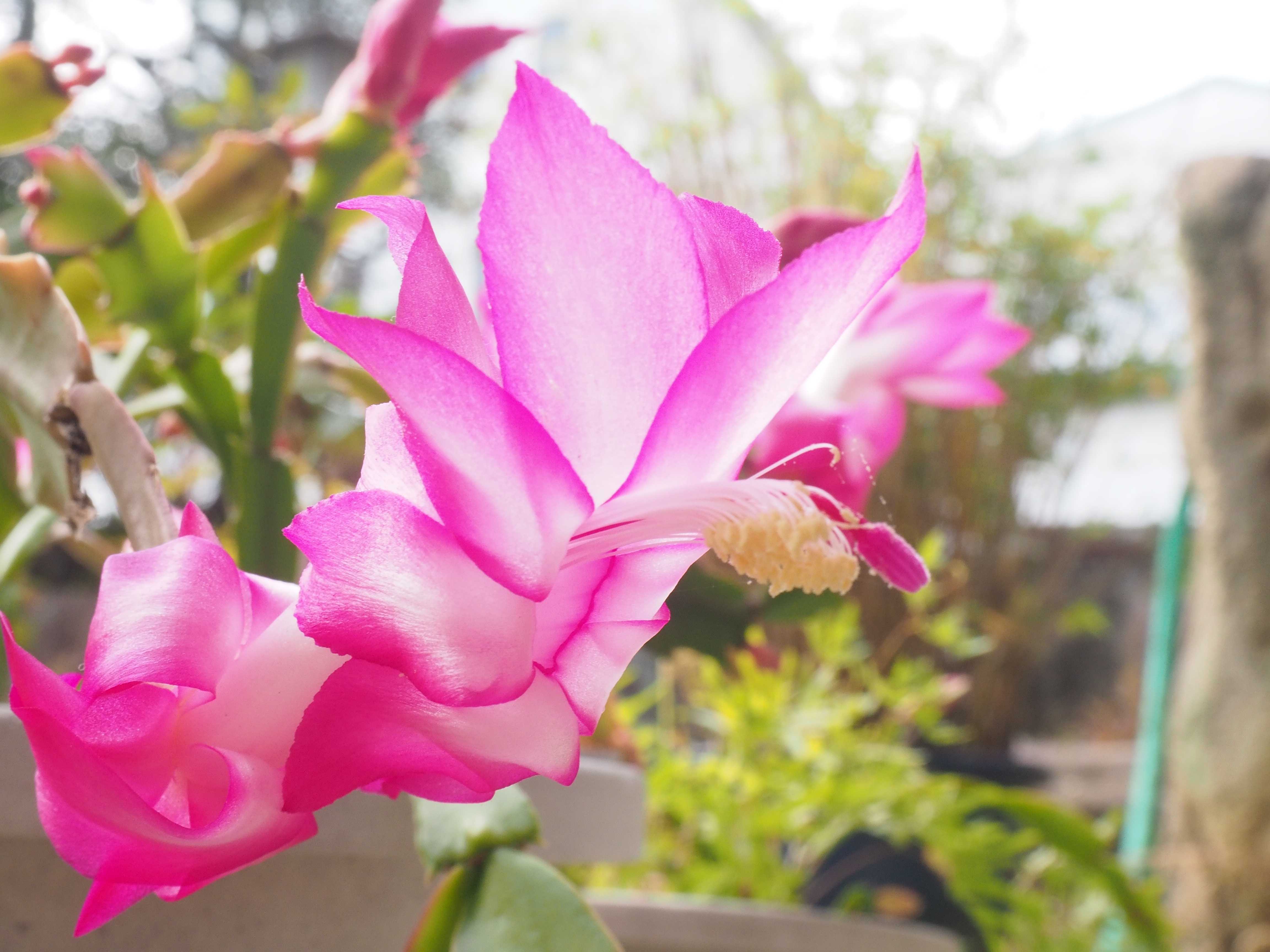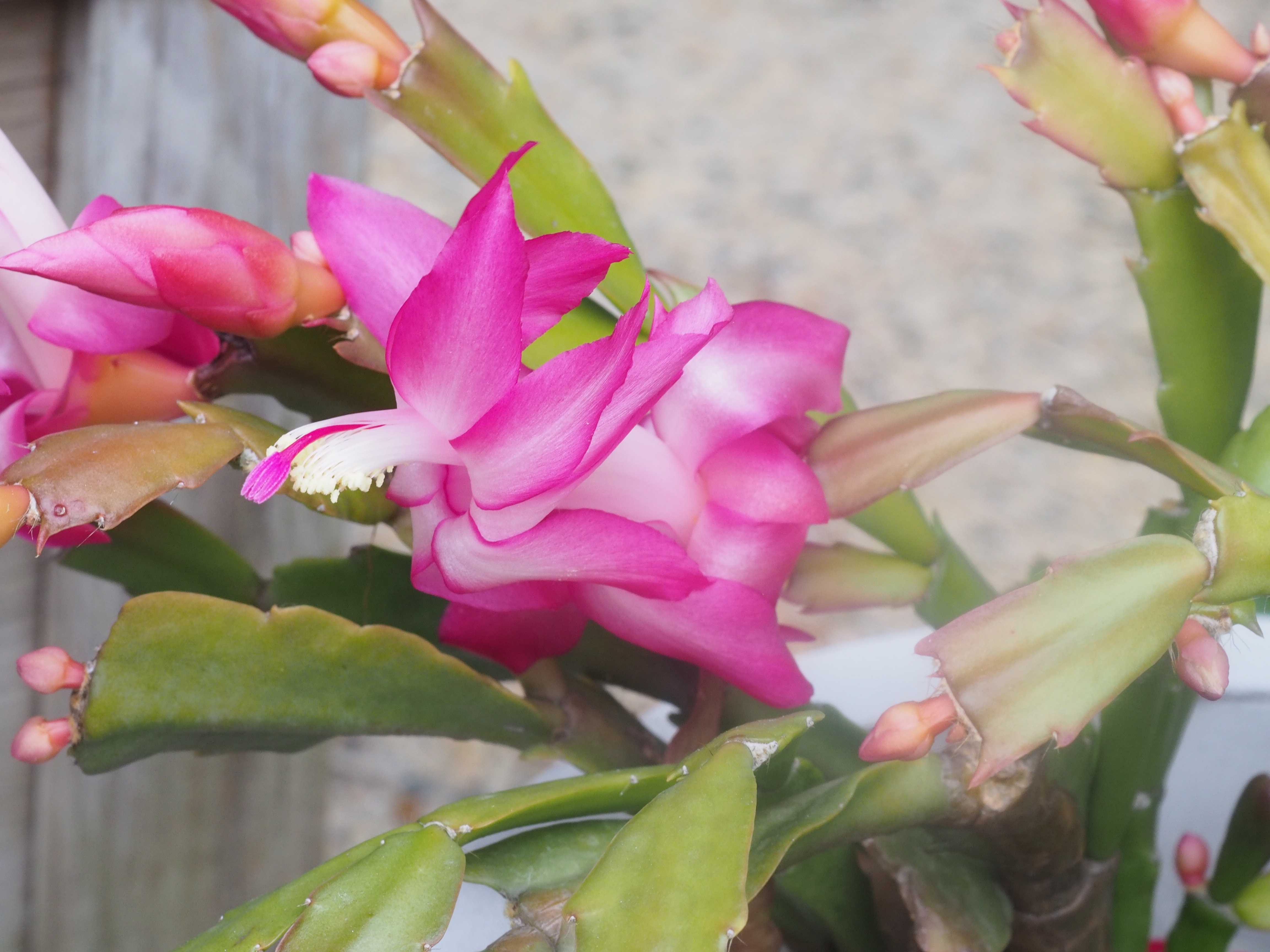 シャコバサボテンの花の季節になりました。いつもながら晩秋の庭を鮮やかに彩ってくれます。