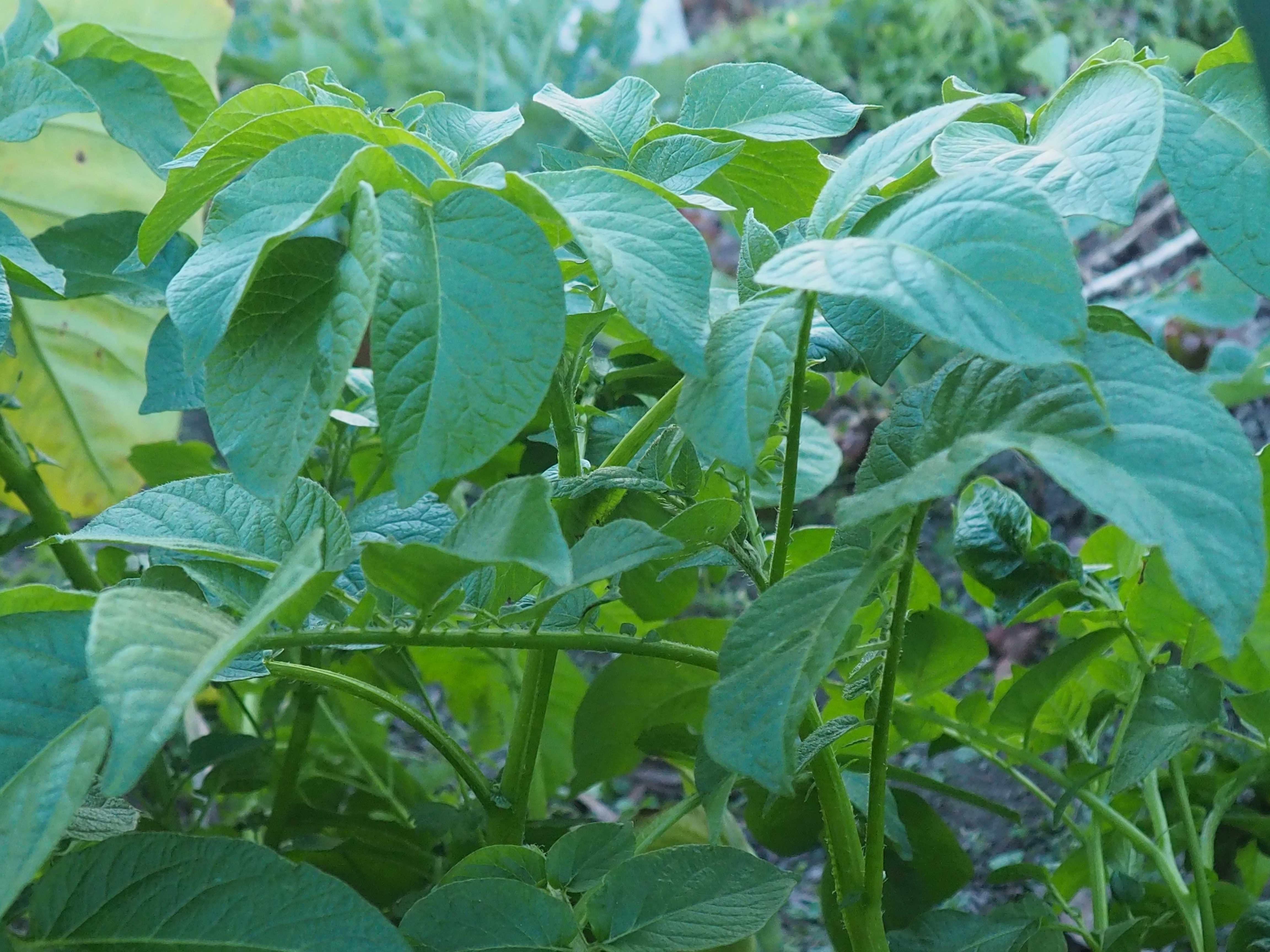 12月にもなると地上部は黄色く枯れてくるのだが、まだぴんぴんして緑色の葉。まだ光合成の最中らしい。掘る気にならない。地上が枯れても芋は残る。よほど温かいのか。