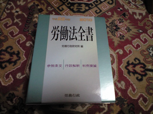 書店では、労働法全書の最新版(写真)を中心に、様々な書籍をまとめて購入。労働法全書は一万円弱しますが、社労士の必需品です。判例から行政通達まで逐条、記載されています。