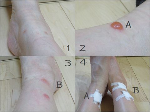 ちょうど靴下のゴムのところが水ぶくれに重なっていたのと、