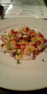昼開けたレ・クレーテのブランにタコのカルバッチオとスペアリブのローズマリー風味焼き。