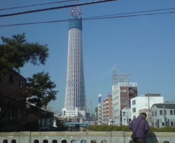 写真は出かける途中に車の中から途中撮った、建設中の新東京タワー。