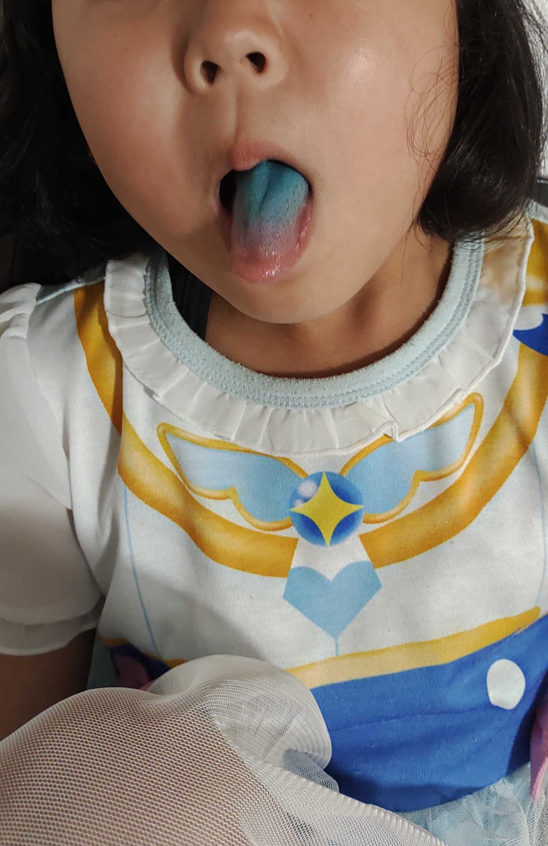 うちの子は、グミが大すきですお気に入りは、HARIBO今日は、別のメーカーのグミ舌が青くなるグミ牛乳をのんでも消えません
