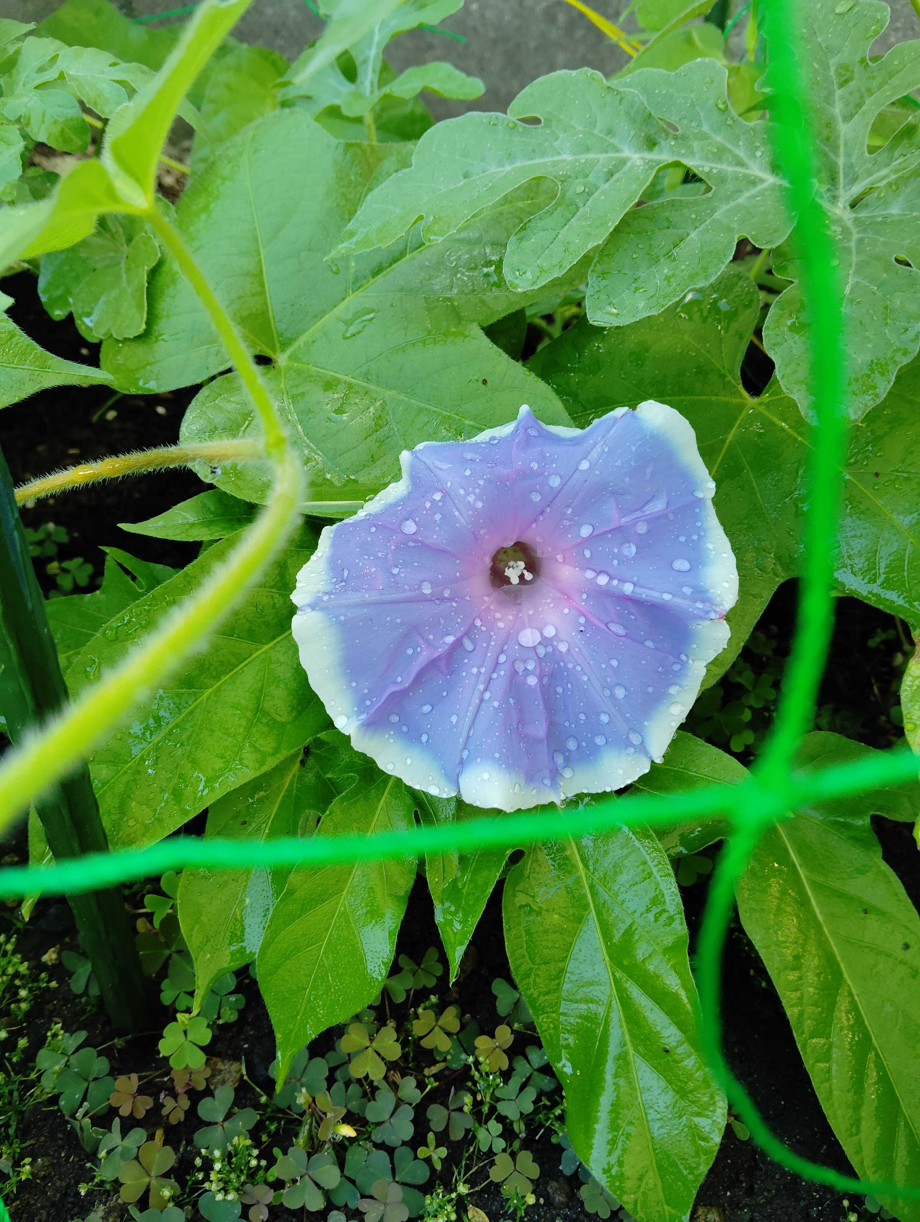 庭に種を蒔いた朝顔、ついに大輪を咲かせました朝顔のほか、キュウリ、大葉、スイカ、ゴーヤを植えています今後の成長が楽しみです😊