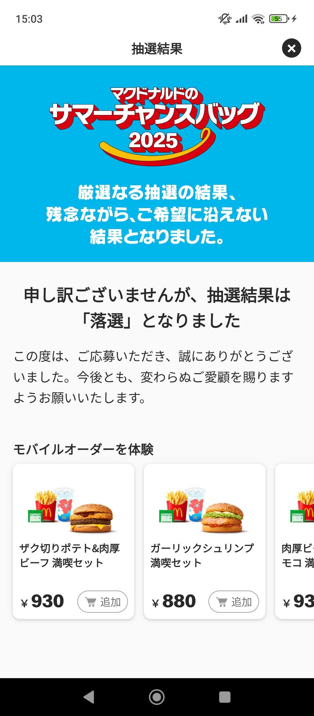 お正月の福袋も、毎年応募していますでも、一度も当選したことがないサマーチャンスバック、やっぱり落選悲しい