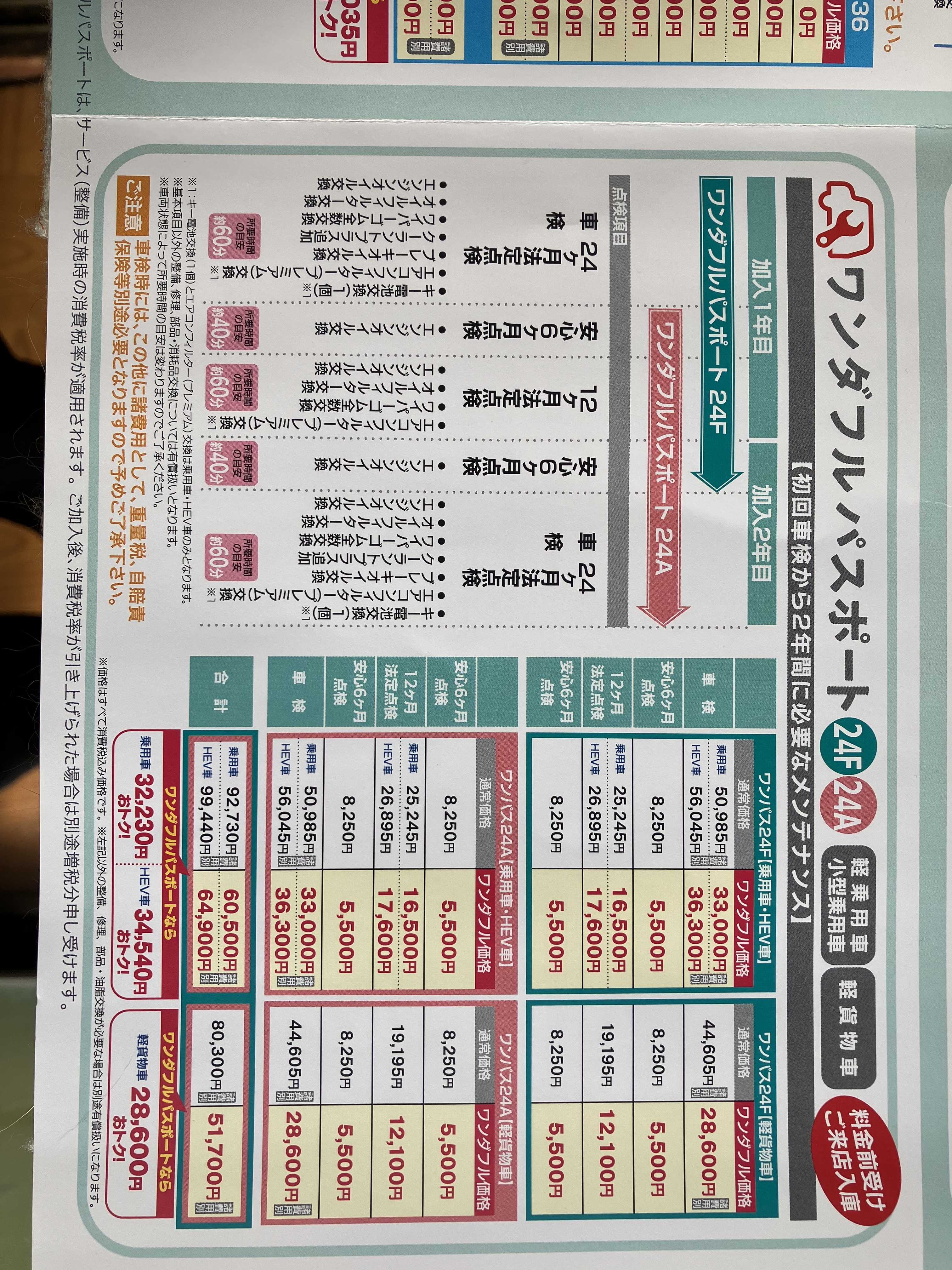 メンテパックは6年落ちの他店購入中古車だったのでワンパスU-CARかと思ってましたがワンパス24A対応だったので助かりました。
