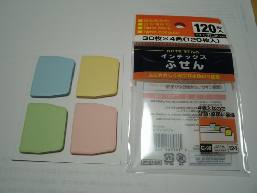 今日は午前中は雨で、午後からは曇りになりました。今まで使っていて便利だった「インデックスふせん」をご紹介します。ダイソーで販売、4色で120枚入っています。いつも、一番大好きな黄緑色がすぐになくなります。他に無印良品でも販売していますが、ダイソーより小さめです。400枚と量が多いです。↓ 私は文字を書き込むので、ダイソーのを使用しています。シール式のインデックスの前に、一時的に使用するのに、とても便利です。↓ 楽天市場さんでの商品のご紹介です ↓インデックス付箋ナチュラルホワイトメール便可!!【送料最安】【リラックマ】 インデックス付箋メモ(上半身)MM036013150円以上で送料無料!(沖縄県をのぞく)お裁縫道具のかわいいインデックス付箋♪【SPICE/スパイス】【LOOK TAG!】ダイカット付箋 ソーイング PFBS1020【3,150円以上で送料無料】インデックスラベルのような、たっぷり書き込める付箋【マークス オリジナル】 インデックス付箋/パンセ 【楽ギフ_包装】
