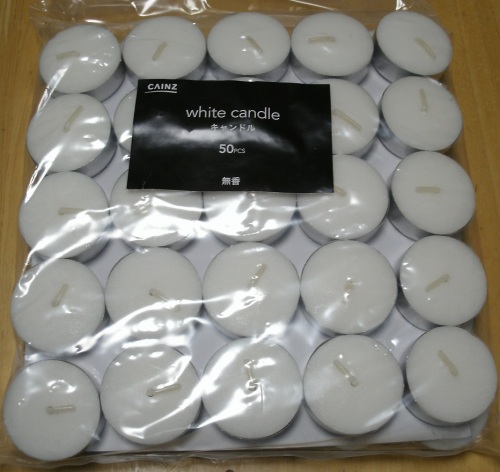 今日は曇りで10時頃、少し雨が降り、午後も曇りのままでした。毎日、精油の香りを楽しんでいるので、ティーキャンドルはお得なのをいつも探しています。今回は、カインズホームさんのをご紹介します。50個入りで、298円でした。うちのは高さが1.3センチのティーキャンドルが入ります。だいたい3時間ぐらいのです。ちなみに、いつもは15個で105円のを使用しています。↓ 楽天市場さんでの商品のご紹介です ↓更にお求め易く!【SALE】1個当たり6.5円「100個ティーキャンドル」BOX入り【キャンドル】オーガニックティーキャンドル 6個入り↓ キット、あります ↓【ワンコインセット】手作りキャンドルキット ティーライト6個セット(クリア)