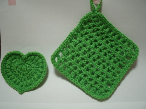今日は午後3時頃まで曇りで強風でしたが、3時以降は雨が降り出しています。昨日のエコたわしの本から、2枚編んでみました。かぎ針6/0号で編んだので、ハートは横9センチ、四角の方は約12.5センチ角です。使用した毛糸は、アクリル毛糸の緑色です。ハートの方はパソコンの画面拭きに、四角は窓拭きに使います。↓ 楽天市場さんでの商品のご紹介です ↓【送料無料】かぎ針で編むひと玉で作れるエコたわし [ 寺西恵里子 ]お買い得品!!ハマナカホビーメイク・アクリル毛糸!!~たわし・靴下・モチーフ・バザー・ペットの服・ポンポン・あやとりなどに~【ハマナカ】 ホビーメイク 〈極太〉