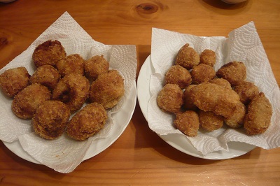 里芋の出荷がはじまりました~今年の芋は ま~るくって形の良いのが多くて良好です毎年、周年栽培の水菜と平行して里芋の出荷も行なうので、これから年末まで里芋専門で短期のパートさんに来てもらいます。今年も7名ほど。数名は毎年同じ方です。里芋が始まると 年末に向かって忙しくなります。ああ、もうそんな時期なんだな~ 冬が近づいているんだな・・・祝日でお休みのエナンと 里芋コロッケを作りました。 お弁当用に一口サイズと実家のおばあちゃんにもあげると言っていつもたくさん作ります。あ、写真の他にもう一皿ありますよおいしかったです~