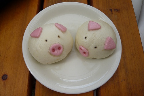 実家の母とカルフールに行ったら こんなものを見つけました。 豚の顔した豚まんです 1個 98円也。 子ども達も喜ぶだろうし 珍しいから人数分、買ってくれました。 豚ちゃんが並んでちょっと怖かったです・・・食べるのもなんだかかわいそうでしたでも おいしかったよ~
