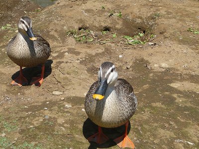 昨年、我が家にやって来たカルガモちゃん(こちら)今年もやってきました ここ、洗った水菜の水が流れて溜まっているところ。がらんとしてさみしくなったピヨ達の小屋のすぐ近くです。昨年も来たせいか、もうすっかりなついて毎日やってきます。手からパンを食べ、人の姿が見えると があがあ鳴きながら寄ってきます。もうかわいいのなんのエナンが名前を付けました。モカとルカです。単純~実は先日、卵を見つけたのですがどうやらカラスにもっていかれてしまいました自然の厳しさをまた見せられました。でもきっと・・・そのうち親子でカルガモ行進をみられますように・・・