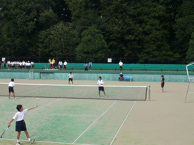 なんだかんだと気がつけば あれ もう7月~一時 余裕のあった仕事も、一番たよりになるパートさんが両腕を骨折してしまい長期休みとなったあたりからめちゃくちゃ忙しくなるし・・・パパはPTA関係でここのところしょっちゅう学校に行っちゃうし~楽しくて仕方ないテニスも何とかレッスンだけは行っているものの、サークル関係はご無沙汰してしまっています最近、新たに同じくらいの女性の方たちに市営コートでの練習に誘われたのですが、なかなか行けません月一のエステもこの頃 2~3か月に一回になってるし・・・農家の嫁だけど・・・わかっているけど・・・私、仕事だけの人生なんて絶対にいや~人生一度きりだもん。 やりたいこと、楽しいことやらせてもらいますからっ・・・はい。もうちょっと仕事が落ち着いたらね・・・そんな中でも リョーマの学校総合大会だけは仕事を捨てて応援に行ってきました。最近、リョーマとペアの子S君は絶好調でした。練習では1番手の部長たちにもストレート勝ちをし、コーチや先生にものすごく期待されていたのですが・・・なんとS君が大会4日前の練習中に捻挫・・・いろいろとありましたが、試合は出られず代わりの子と出たリョーマ。やっぱり即席ペアでは無理があり、運悪く初戦に準優勝の相手と当たり敗北でした自分一人がなんとかしなくちゃと気負いすぎて焦ってしまっていました。個人戦は初戦敗退でしたが、次の日、各校3チームしか出られない団体戦にも出させてもらいました。周りはみんな3年生ペアだらけの中、いきなりの初戦は今度は昨日の個人戦の優勝ペアもう 開き直ったのか、負けはしたもののすごく内容のよい試合で、先生をはじめ部員のみんなにもほめられていました。先輩たちも頑張って、予選を通過。結局賞状はもらえたものの惜しくも3位でした。わが息子リョーマ君。 おとなしくて恥ずかしがり屋でどこかひょうひょうとして・・・と思っていたのは親だけか・・・?3年の先輩たちと仲良くはしゃいで、おしゃべりして・・・部長と特に仲がよく、コーチにも「部長はリョーマと本当はペアを組みたいみたいだよ。」と言われました。個人プレーのテニスですが、団体戦だからかな~すごくまとまっていました。出られなかった先輩達には申し訳ないけど、こんな経験が出来て本当によかった。そんな先輩たちもこれで引退です。さみしいなあ~余談ですが、他校の保護者の方に言われました。「リョーマ君って リョーマが本名じゃないよね?(はい。もちろん実名は○○マという名前ですがリョーマではありません。)うちの学校ではリョーマって言われてるんだよ~テニスの王子様のリョーマにそっくりって!。テニス上手だし帽子かぶったらまさにリョーマだよ~!」あと一つそっくりなのは おちび な所ですが・・・いまだにクラスで一番前です「そんなことないよ~」と言いながらにやけ顔になってしまう私でした親バカですね~只今 期末テスト前で部活停止中。終わったら 夏は大会だらけですいよいよ時代がやってくる~がんばれ リョーマ