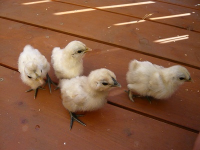 お久しぶりです~7月7日生まれの ヒヨコたちですが こんなにちびちゃんだったのが・・・ こんなに大きくなりました~それでもまだまだおこちゃまで・・・親離れ、子離れが出来ません。普通はもうヒヨコがこれ位大きくなれば再び卵を産み始めるそうですが、全くそんな気配はなし。ヒヨコたちもピヨの背中に乗ってくつろいでいたり(ピヨ、重いだろ~)夜は必ず ピヨのお腹の中に潜り込みます。 しかし、体が大きくなっているので2羽ほど入れず、ピヨにひっついています。ピヨのお腹の下は毎晩取り合いです わんこのゲージも狭そうで、庭で遊ばせたりもしていますが ここの所の雨でそれも出来ず、扉を開けると 飛び出してきます。元気一杯ただいま、仕事の合間に 鶏小屋をパパが製作中。もうちょっと ここで 我慢してね