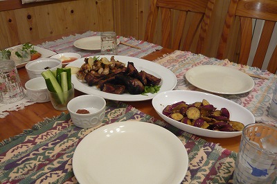 今日は 何ヶ月ぶりかで市のテニスコートを借りて 親子でテニスをしてきました。パパは自治会のソフトボール大会だったので 親子3人です。すでに 硬式テニスのスクールを辞めて学校の軟式テニス一本のリョーマでしたが、やり始めれば、すぐに感覚を取り戻し・・・若さですなあ~エナンも育成クラスのお陰!?か、リョーマと2人でもなかなかよい感じで打ち合っていました。一人 取り残されていく母親の私・・・ さみしいわ・・・久しぶりですが、 日曜日の夕食です。 鶏と豚のスペアリブ。 ちょっと豚の方が焦げちゃいましたそれから、海老の生春巻き。 春雨がなかったので、素麺で作ってみました。後は 畑のナスのお漬け物、同じくスティックきゅうり。義母の作った 今年初採りのさつまいもで大学芋風に。おいしかったで~すあ、パパ達のチームはしっかり優勝してきました~
