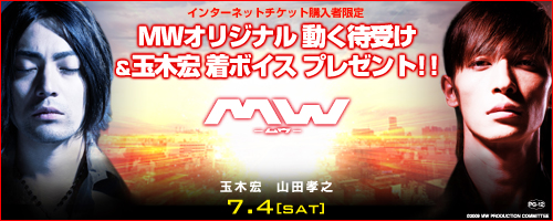 今朝は昨日とは打って変わって大荒れのお天気となっております・・・こんな中、艦長にお会いして来ようかどうか悩む私、、、今週行かないと、最後な気がする、、、 だって!【MW-ムウ-VISUAL BOOK】に侵されて、、、これ見てるだけで1日過ごせそうなので、、、(どんだけ~!)もう、ミッチーの美しさ、表情にはう~~んなんて甘い感じでは浸れなくてついつい 「ひいぃ~~~っ!」っと仰け反ってマス(^^; 昨日、つけてあったテレビの存在忘れてビジュアルブックを見ていた夜のこと魔王や魔女が現れる番組の後に【MW】のスペシャルドラマの予告流れておんぎゃぁ~~~!!でしたあぁ、、、もう着実に【MW-ムウ-】 に近づいているんですね!! 怒涛の特番 4連弾も放送決定!!これからは日テレ系列の番組から目が離せないです!! 映画「MW」公開記念スペシャル「美しきダークヒーロー 俳優・玉木宏 独占密着!20代最後の挑戦!」7月11日(土)24:50~ SDT静岡第一テレビ静岡、、、放送遅いがな、、、(涙;)だけど、1時間番組だったのが幸い、、、30分に短縮されている地域って、、、何故??どうして??なのこれは映り悪くても愛知の放送で6月27日のを見たい!! ドラマ MW-ムウ- 第0章 悪魔のゲーム"放送直前SP6月30日(火)15:55~16:55はうん、真昼間ならまだしも、このお時間子供が帰ってきてます~!!一緒にみれるでしょうかぁ~~?? ドラマ「MW-ムウ-第0章 悪魔のゲーム」6月30日(火)21:00~22:48宏&健 ほぼ健くんだと思うけど、、、昨日発売のJUNON読んだら、とってもワクワク!!なんです~ シネマガ「MW」特番 7月9日(木)26:00~ SDT静岡第一テレビオヨヨ、、、もう少し早い時間にお願いしたいの SDT、、、 ~玉木宏に結城美智雄を見た~そんな松橋Pのお話にもう感動なんです漫画のキャラクターの想像を裏切らない、想像以上の人間、、、男性からも女性からみても美しい、、、もう、要するにそんな存在はヒロシしかいなかった訳で、、、はう~~ん・・・・MWのHPがミッチーにジャックされてるぅ~!ヤフー映画のサイトもお勧め →☆にほんブログ村