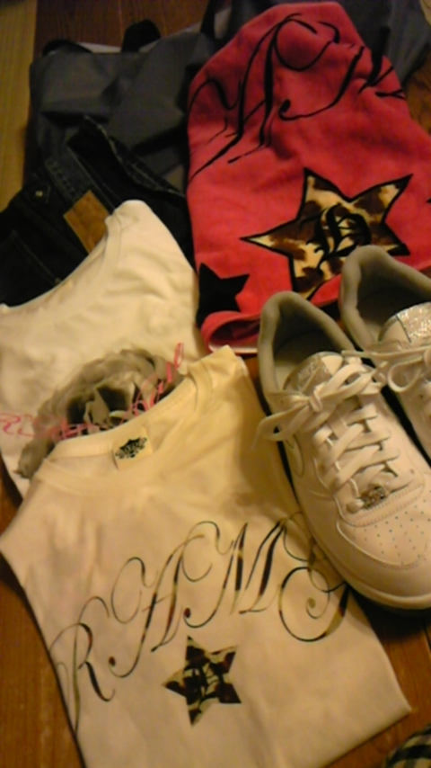 大阪まであと2日 遠足前の子供のようですそわそわしちゃって、落ち着かない・・・ そんな今日、待ちに待ったRA★MGグッズが届きましたとりあえず、当日に着ようと思ってTシャツ2枚とタオル1枚あとデニムのハーフパンツやら体育館用のシューズやらかばんに詰めまくったら、、、 あんた、いったいどこに旅行いくのさ?!泊まり??って感じになっちゃいました 田舎者なんで、荷物が多くって許してね~~ 当日のご当地弁当っていうのが気になります。大阪・・・たこやき?おこのみやき? おやつはいくらまで、、、、(って、こどもかぁーーー!!!) あ~~、服が地味目だからバッグ派手なやつ買っておけばよかったよ、、、 ・・・ごめんなさい、浮かれてて