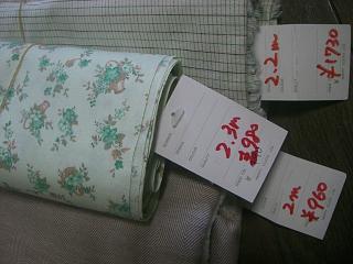 今日2つ目の日記です。造幣局の桜を見に行ったらコイン通り(造幣局があるのでこういう名称です)でセールをやっているお店がいくつもありました。これは、、あのお店に寄らねば!!と行ったのがOUTLET FABRICSさんの実店舗 でした。(コイン通り沿いにお店があるのです)予想通り、いつも店頭に並んでいるハギレの山のワゴンが3つで500円!普段は半額なんですが、ハギレといっても1mもあるものもあるんですよ。それでワゴンの中をひっくり返して探してきたのがコチラ2mもあるのにハギレなんですよ^_^;ついている値段は通常価格と思われ、普段はこの半額で売られています。が、、今回は3つで500円ですから!!ついている値段から比べたら信じられない価格でしょ??フフフただ、注意しなくてはいけないのが、中には傷モノの生地も混ざっているということ。以前同じように買った生地は、かなりの範囲に傷がありました。それでも価格を考えれば文句は言えません。傷部分を省いて使えば普通に布として使えますからねぇ。ということで、キレイな桜も見れたし、お得に生地も買えてルンルン気分で帰宅したのでした。この生地、、どんな風に使おうかなぁぁ ポチッとご協力をお願いします^^