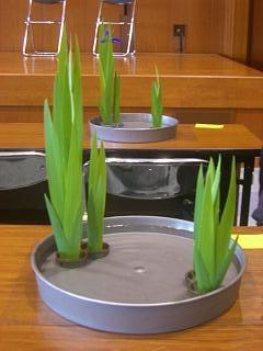今日は研究会でした。帰宅してすぐまた出かけたのでブログを書くのが遅くなりましたこの1ヶ月ほど、ひたすらこのお稽古ばかりしてきました。カキツバタの様式は覚えることが沢山あって大変ですから。でもそのおかげで、だいぶ覚えましたよで、今日の結果は90点でした。まぁ、いわゆる合格点、ってやつですね。いけた直後の私の感想は、できることはできたかな?と割と満足でした。今までお稽古していた中では一番キレイに入った気がします。準優秀花(95点)との差は、水きり葉が長すぎたからのようでした。 *水切り葉・・・専門用語?です。水を切って出てくる葉、つまりは今水面から顔をだしたばかりの葉の意味。 そのため緑の色が濃く、葉が細いものを使わなくてはならないもう1点、画像は採点される前に退出する前に撮ったものなのですが、採点が終わって席に戻ったらなんと、主枝の葉と花が後ろに倒れてダラ~ンと・・・(涙)刺し方が甘かったんですね><まぁこの辺りはしょうがないかなぁ、と自分でも納得。それでも苦手の1つだったカキツバタのいけ方をだいぶ覚えられたこと、そして合格点の90点を取れたことは大きな自信になりました研究会に出席しないと覚えないのでこういう上達はしないわけで、それだけでも価値があるなぁと実感しました。 ポチッとご協力をお願いします^^