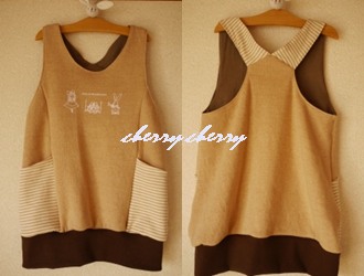 型紙:Milimili サロペットチュニック サイズ120 生地:COSMO ダンボールニットナチュラル 他、ボーダーはHANA/MIZUKIオーガニックコットン昨日とは生地・サイズを変えて、もう1枚サロペットチュニックを^^今回はベージュをベースにポケットなどに別布を合わせて変化をつけました。後ろ姿にも変化が出るように、後ろの肩ひもがボーダー布になっています。無地の布なので、フロッキープリントをつけました Rick Rack さんのフロッキープリントですこの組み合わせも悪くなかったかなぁ~?ポケットと後ろ紐だけ別布っていう組み合わせ、なかなか気に入りました^^フロッキープリントがいい味を出してくれてるな~と思ってます。昨日・今日UPしたサロペットチュニックは、委託先のMamachenさんに発送してます^^今日くらいに届くかなぁ~?