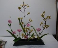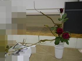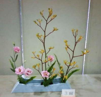 今日は研究会でした。今日に限って、カメラを忘れてしまい、、携帯画像><結果は、95点取れました~~~\(^o^)/名古屋にきてからずっと取れなかった(もう半年たちます)ので、ものすっごく嬉しかったです!!しかも、廊下に参考花として出されたので、嬉しさ倍増!ヤッタ~~って叫びたいくらいでしたが、そこはグッと我慢して、心の中でガッツポーツしてました(笑)帰宅してから、叫んだのはナイショですw今日は参加人数が多くて、3級だけで37人いました。もう一人、会場内に参考花になっていた人がいましたね。客枝もカンガルーポーで取った方もいてとても勉強になりました。私は 主枝・副枝・客枝の3つとも同じ花材でとったことがたぶんありません。私の中では主枝・副枝が同じで客枝だけ違うパターンの方が慣れているというかいけやすいからですが、いろんなパターンでいけられるようにお稽古することも必要ですね~。金曜日にお稽古した花材は娘にあげて、娘のお稽古もつけてあげました。昨日は旦那がゴルフでいなかったので、娘と2人お留守番で時間があったので。画像はとっていませんが、たてるかたちでお稽古です。主枝・客枝といっても娘にわかりにくいので、お父さん・お母さんに例えて説明w1番苦労したのは角度をいうとき。45度といっても、学校で角度をまだ習っていないのでわかるわけがないんですよね。子どもに教えるのってある意味難しいのを実感しましたwまぁ娘も楽しんでくれているようなので、これからもこうやってお稽古をつけてあげたいと思います^^