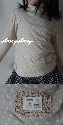 縫い縫い、まだまだ続行中です♪久しぶり?に着画です~ 型紙:ORIKA オフタートル サイズ130 生地:雑貨屋さんのハギレ 接結ニット久しぶりに娘服です。昨年作ったタートルネックをやたら娘が愛用しているので、もう1着作りました。これから重ね着のインにするにも便利ですしね^^生地は気になっていた雑貨屋さんでみつけたハギレです。接結ニットというのは、テッシュみたいに2枚を1枚にくっつけてある生地で、こういう生地は間に空気が入るので暖かいはず。しかもこの生地は肌ざわりがとってもやわらか、ふわふわで~♪赤ちゃんにもOKだなぁという感じなうえ、しっかり伸びてくれるのでタートルネックTにするのにピッタリだなぁ~と思って買ったのでした。予想通り、そのふわふわ感は娘も気にいてくれて、完成した翌日早速学校に着て行きましたわ^^アクセントはRickRackさんのさくらんぼタグです。茶色の花柄(布帛です)生地をベースにつけてみました。ちなみに学校では胸に名札をつけるので胸はあえてはずして、裾の方につけましたよ。この茶色の花柄も娘はどう反応するかなぁとドキドキでしたが、気にいってくれたようでよかったです^^ 今日は台風が接近するとのこと。家にいる時間が長くなりそうなので、また縫い縫いしようかなぁ~~♪