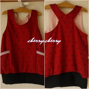 昨日の夕方から、なんとなく頭痛が。。。どうやら、地区別研究会が終わってホッとして疲れが出たようです。昨日は晩御飯を食べて早々に寝たら、スッキリしましたけどね(*^_^*)ちなみに明日は旦那が有給をとってます。先週から激務が続いており、土曜日も早朝からゴルフ、日曜日は私が不在だったため午前中のみ娘を連れて町内の運動会に行ってました。ゆっくりする休日がないのでへとへとで、有給をとったそうで。いい歳なのでゆっくりしてほしいと思います。 型紙:Milimili サロペットチュニック サイズ110 生地:COSMO 裏ミニパイルのトレーナー地この型紙、まだあまり使ってないので(過去1着のみ)作ってみました。何より後ろ姿がカワイイ型紙です^^エンジ色に黒の水玉の生地で、インパクトもある色なのでシンプルに仕上げました。ポケット口にレースをつけただけです。まぁチュニックは重ね着ですからね~~。作ってハンガーにかけておくと、どうやら娘が気にいったようで、私にも作って~っと。生地在庫はあるのですが、何せ赤やらピンクの服ばかりの娘なので、私的には避けたくて、そうだね~~っとあいまいな返事をして誤魔化しちゃいました(^^ゞ地区別研究会も終わったのでまだまだ作りたいものがイッパイ。まだまだ縫い縫いがんばります!