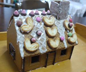 一昨日、冬休みでヒマをしている娘のために、一緒にお菓子の家を作りましたIKEAの食品福袋に入っていた、ジンジャーブレッドハウスを使いました。組み立てればおうちになるクッキーが入っているのでカンタンです。作ったのはおうちパーツの接着剤代わりになるアイシングのみ。そのアイシングも卵白と粉砂糖を混ぜるだけ!ネットでレシピを検索して作ったのですが、アイシングに使う粉砂糖が思ったより分量がいるのにビックリ。お店で一袋だけ買ってきたら全然足りず。。うちにあった使いさしの粉砂糖も足したし、卵白の量も減らしたのですが、ゆるすぎるアイシングになってしまって、そこが大失敗でした。アイシングが緩いということは、固まりづらい!レモン汁を落として固まりやすくしたのですが、それでも緩いので、普通の砂糖も足したりしたのですが、接着剤としてはダメダメで。。。なかなか固まらないので、くっつかないんですよ><それで娘と四苦八苦しました煙突部分のクッキーが1枚割れていたので、さらに苦労したのですが、煙突がないと可愛くないから!と諦める娘を横目に私が頑張りました。飾り付けは市販のお菓子です。ポッキー(極細)、マーブルチョコ、アポロ、源氏パイ を使って娘がデザインしましたよ。余ったアイシングを雪に見立てて屋根にかけたのですが、アイシングが緩いばっかりに垂れる垂れる・・・wもう最後は、これでいいや~と半分投げやりで完成しました。上からラップをかけて1日置いておいたら、アイシングが固まってしっかりしました。が、、垂れたアイシングが底にしていたお盆(トレイ)とくっついてしまい、おうち全体が取れません(^^ゞまあ食べるときに無理やり取るしかないですが~。ラップをかけておいておいたら、昨日家庭訪問に来てくださった先生の目にとまって、質問されてましたけどね~ちなみにベースのおうちは、ジンジャーブレッドハウスのとおり、生姜の香りがしています。まだ食べていませんが、今日あたり娘とおやつに頂く予定です