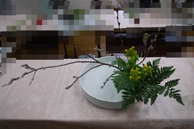 久しぶりのお花のお稽古です。引越し挟んで、1か月半ぶりですね~。しかもその1か月半前のお稽古の前は1か月くらいあいていましたしね~。福岡に来て初めてのお稽古。紹介いただいた先生も初めてお会いしました。先生も一緒にお稽古している他の皆さんもとっても気さくに声をかけてくださって嬉しかったです^^先生がご用意してくださっていた今日のお稽古は、来月の研究会の3級のお題の花材でした。観水形がお題だったので観水形です。 久しぶりのお稽古でしたが私の中では違和感なくいけることができました^^こちらのお稽古の机の高さが随分低めで、椅子に座っていけている時は全然気にならなかったのですが、先生にみていただくと高い位置から見るので、後ろ側の足元が丸見えだと指摘されました。研究会などで、先生が背の高い方だと見る視点が違うから~っと考慮していける話は前から聞いていましたが、今日のお稽古でそれを実感しましたわ~。あとは七宝でいけましたが、中間枝の挿し口についての指導をうけました。役枝についてはしっかりいけていましたが、中間枝の挿し口については私の中で曖昧になっていたのを見事指摘された気がしました。しっかり教えていただいたので、次回からは大丈夫だと思いますまだ新しいお稽古場に慣れてはいませんが、これから少しずつ、、、ね印象としては、和気あいあいとした雰囲気でお稽古されているな~っと。お茶とお菓子も出していただいたり、そういうのは久しぶりでした。(名古屋ではそういうのはなかったのでね)我が家からも割と近いので通いやすいですし。早くお稽古場に慣れて、楽しみながらお稽古頑張ろうと思います
