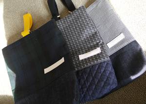 Dカンがなくて中断していたのですが、一昨日手芸ナカムラさんから荷物が届いたのでやっと完成しました。シューズケース、男の子用です。他には男の子用のレッスンバッグとシューズケースのセットです。71008プラDカン(2.5c)10個10個で100円というありえない安さのナカムラさん。助かります!生地もハギレや福袋に入っていたもの、在庫品を使わせていただきました。過去にブログUPしたものを合わせると レッスンバッグ4枚 シューズケース5枚 お弁当袋3枚完成したので、昨日発送しました。キルティングで作ったものが多かったからか予想より大きいサイズになってしまい、送料がUPしてちょっと痛かったですが(^_^;) MYmamaさんのブログによると、岩手県の全小学校には連絡されているそうですが、枚数が足らなくて他の県にはまだ連絡ができない状態だそうです。なのでまだまだ受付されているようなので、気になる方はコチラをご覧くださいね。