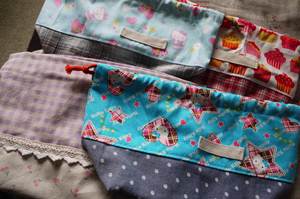 被災地へのボランティア品、今日はお弁当袋です。もうおそらく使わないだろうと思われるキャラ生地を使わせていただきました。左下の紫チェックとさくらんぼは娘用です。娘用のお弁当袋がなかったのを思い出してついでに一緒に作りました。ミシン作業がイマイチはかどりません。今回も、信じられないミスをしまして、一度解いたりしたので余分に時間がかかってしまいましたそれでも完成したので良かったですが。どうも、気が抜けてしまっているというか何というか・・・とりあえずはゆっくりながらも何かを作ろうと思ってますけどね。そのうちペースが戻ってくるかと。