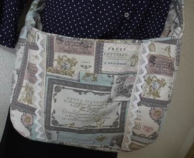 型紙:shell button 斜めがけバッグ大 生地:クラフトパーク斜め掛けバッグを作りました。12月にあったイベントにもっとたくさん作りたかったのに時間がなくて2つしか作れなかったのでね。あの時はものすごい勢いでミシンしてたので縫製1日で完成させてた記憶があるのですが、今はのんびりモードなので、裁断・芯張り・縫製と数日かけて完成です(^^ゞこういうアンティーク調の布はあんまり使ったことがなかったのでとっても新鮮!柄があるのであんまり装飾はしないでおきました。表面に少しだけレースをはさんだくらい。(レースとレースの間はポケットです)でも柄を生かすなら無地と組み合わせた方が良かったかなぁ~? バッグ内側バッグの内側は無地でシンプルに。立体ポケットもついたポケットがあります。ちなみにショルダーのひも部分も同じ無地を使っています。ひも幅が4cmくらいあるので、バッグが重くなっても肩への負担が少ないです。バッグ裏面にも雑誌が入る大きなポケットがついていてモノもたくさん入る使いやすいバッグだと思っています^^今回は接着芯にこちらを使いました厚手接着芯白しっかりした厚手なので、バッグ自体もしっかりしています^^そのかわり、バッグのカーブ部分が縫いにくいのですが・・・(^^ゞ
