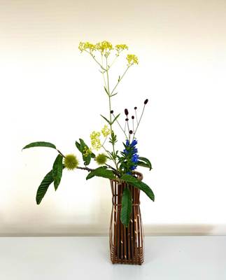 今日のお稽古は花屋さんに枝物が何もないそうで、事前に聞いていたため育てている花材と自生している栗を採っていきました。先生が用意くださった花材と合わせて籠いけのお稽古をすることにしました。相変わらず、立ち透かし籠にいけるときは時間がかかってますおとしに引っ掛かりがないので、ツルツル滑るんですよね。。。栗の葉をどこまで整理するか、吾亦紅の入れ方などお手直しをいただきました。竜胆が茎が華奢な楚々とした雰囲気の品種だそうで、とってもキレイでした。女郎花は育てたものですが今が旬で状態がいいです^^さて、地区別教授者研究会が近づいてきました。今年は特別開催地の福井で受けます。昨年の反省を踏まえて、筆記の勉強を頑張っています。実技はともかく、筆記くらいは満点を取りたいですが、先週行われた秋田の地区別の筆記では満点者が1人のみだったそうで。それでも、地元に近い場所で受けることができるありがたみを最大限に生かしたいです。地区別が終わるまでは粛々と日常生活を過ごして集中力を高めます