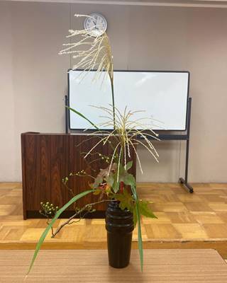今回の取り合わせはどれも主材になりうる花材で、どれをどう生かすかが難しかったです。
