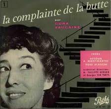 ☆’54年のフランス映画『フレンチ・カンカン』の主題歌として有名になった『モンマルトルの丘 / LA COMPLAINTE DE LA BUTTE』です。作詞がこの映画の監督ジャン・ルノワール、作曲がジョルジュ・ヴァン・パリスで映画の中でコラ・ヴォケールが女優の吹き替えとして歌ったのが最初でした。その後、コラ・ヴォケールはステージなどでも歌い評判を呼び、またムルージ、パタシュウなども好んで歌いスタンダードシャンソンになって行きました。日本のシャンソンファンの間でも人気の高い1曲と言って良いでしょう。☆LA COMPLAINTE DE LA BUTTE / CORA VAUCAIRE!En haut de la rue St-VincentUn po?te et une inconnueS'aim?rent l'espace d'un instantMais il ne l'a jamais revueCette chanson il composaEsp?rant que son inconnueUn matin d'printemps l'entendraQuelque part au coin d'une rueLa lune trop bl?mePose un diad?meSur tes cheveux rouxLa lune trop rousseDe gloire ?clabousseTon jupon plein d'trousLa lune trop p?leCaresse l'opaleDe tes yeux blas?sPrincesse de la rueSoit la bienvenueDans mon coeur bless?Les escaliers de la butte sont durs aux mis?reuxLes ailes des moulins prot?gent les amoureuxPetite mandigoteJe sens ta menotteQui cherche ma mainJe sens ta poitrineEt ta taille fineJ'oublie mon chagrinJe sens sur tes l?vresUne odeur de fi?vreDe gosse mal nourriEt sous ta caresseJe sens une ivresseQui m'an?antitLes escaliers de la butte sont durs aux mis?reuxLes ailes des moulins prot?gent les amoureuxMais voil? qu'il flotteLa lune se trotteLa princesse aussiSous le ciel sans luneJe pleure ? la bruneMon r?ve ?vanoui