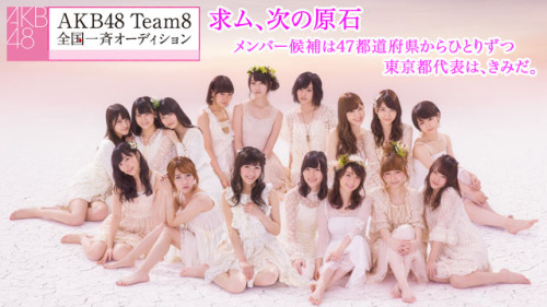☆AKB48は23日、新チーム「チーム8」の発足決定を発表。昨年11月に行われた公開オーディションイベント「AKB48グループ ドラフト会議」の落選組が早くも参加を表明している。 「チーム8」は、従来のAKB48グループと同じ「会いに行けるアイドル」ではなく新たなコンセプト「会いに行くアイドル」を掲げるチーム。同チームのメンバーは、全国で一斉開始するオーディションによって47都道府県から1名ずつ代表が選ばれ、その中でさらに審査が行われる。同チームの活動はトヨタ自動車が全面サポートするそうで、かなり大規模なプロジェクトになると考えられる。 昨年11月10日に行われた「ドラフト会議」は、AKB48グループ全チームのキャプテン(SKE48はリーダー)が、各劇場支配人と協議の上、候補者の中からチームに必要な人材を指名するという公開オーディションイベント。残念ながら指名を受けることができず落選したメンバーたちが、「チーム8」オーディションへの意欲を示している。 藤巻まりあは27日、「藤巻まりあは、このオーディションを受けることに決めました!」とブログで報告。倍率の高さは理解した上でそれでも挑戦したいと語り、「私は一人じゃない。みんながついていてくれる。だから頑張りたい」と宣言した。また、高橋美緒、村上遥たちほかの落選メンバーも参加するという。 「ドラフト会議」で指名されなかった候補者は、各グループで通常オーディションが行われた場合、最終審査から参加できる権利を得ている。しかし、「チーム8」オーディションは従来と形式が大きく異なるので優先権を活用することはできないと予想されている。だが、いかんせん大所帯のAKB48グループ、次はいつ募集をかけるかわからない。落選組もいつ来るとも知れない通常オーディションを待つよりは、ここに賭けようと考えたのだろう。 もし落選組からの復活があれば、AKB48グループの歴史に新たなドラマが加わることになる。なお、「ドラフト会議」落選組は全9名。ほかのメンバーの動向にも注目が集まっている。 「チーム8」オーディションは2月24日午前0時まで応募受け付け中。